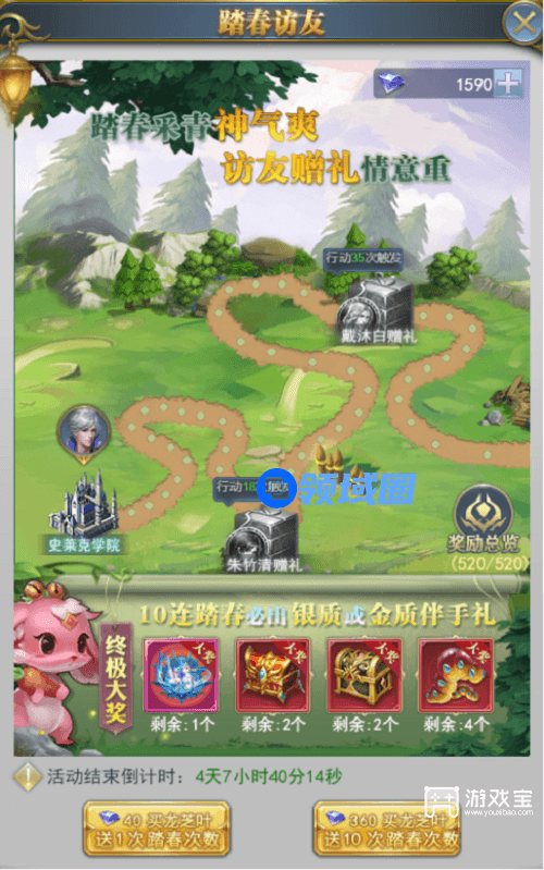 活动期间花费钻石/翠柳枝进行抽奖,同时获赠龙芝叶