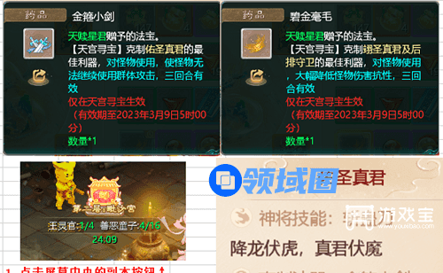 1.每天14:00-14:10匹配,可单人匹配也可组队匹配。2.进场前可在进场NPC处领取两个法宝道具,可克制对应boss。具体可在副本内点屏幕中央的副本按钮查看。