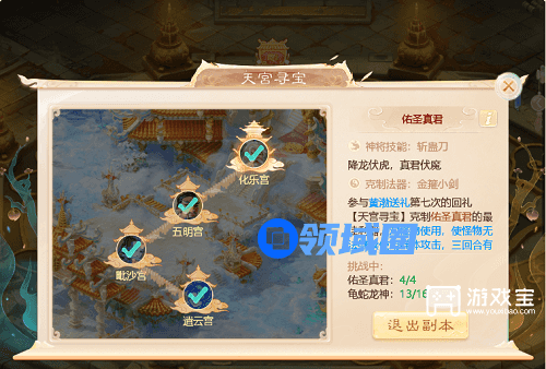 大话西游天宫寻宝一共四层,每层4个精英怪,玩家需要挑战成功以后才能拿到奖励,游戏宝小编带来大话西游天宫寻宝活动攻略,希望可以帮到大家。
