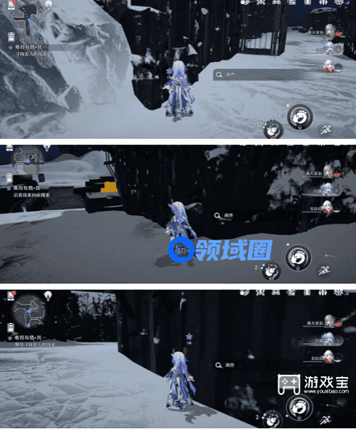 3、和目击证人对话完成之后,玩家需要调查三个地方,如下图所示