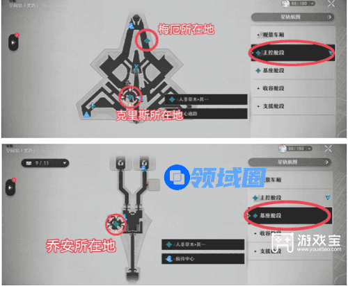 5、根据任务指引,去观察位于主控舱段的克里斯和梅厄,与位于基座舱段的乔安