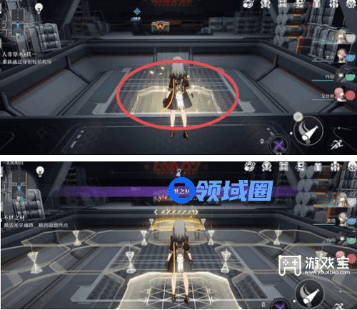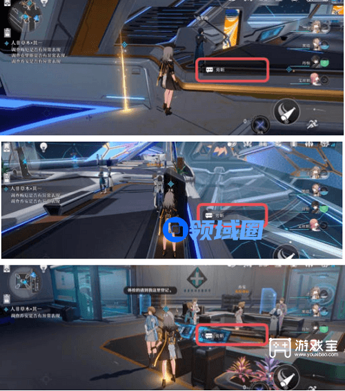 7、将情况汇报给艾丝妲后,艾丝妲提议去使用终端机查阅三人的浏览记录,根据任务指引来到终端机机房