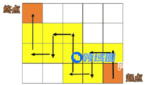 9、具体步骤:往上一格,往左一格,往下一格,往左一格,往上两格,往左一格,往下一格,往左一格,往上两格,成功到达终点;