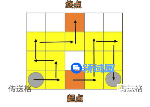 12、具体步骤:往右一格,往上两格,往右一格,往下两格,传送到另一个区块;往右一格,往上一格,往左一格,往上一格,往右两格,往上一格,成功到达终点