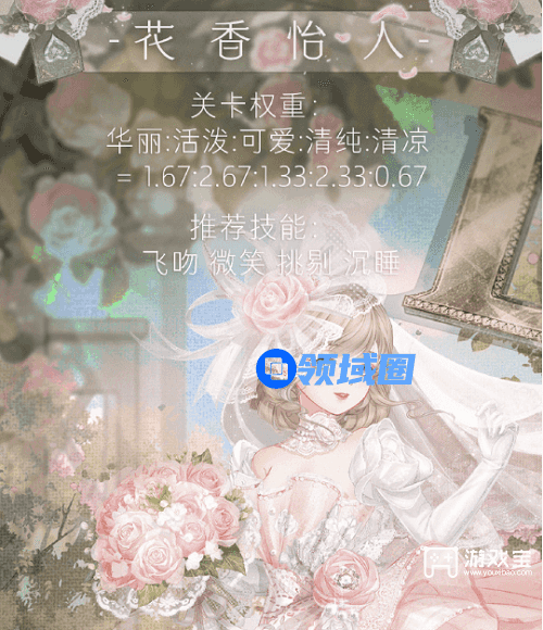 1、关卡权重: 华丽:活泼:可爱:清纯:清凉 = 1.67:2.67:1.33:2.33:0.67