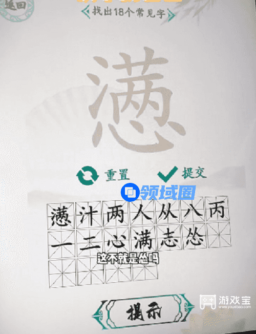 汉字找茬王最新找字关卡中,需要玩家从满心上找出18个汉字才可以过关,游戏宝小编带来汉字找茬王满心找出18个字攻略,一起来看看吧。