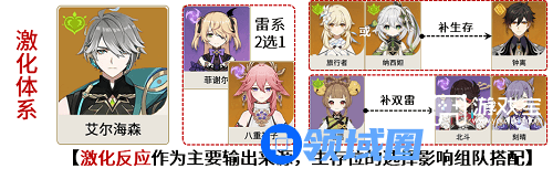 优点:稳定触发激化反应,雷草角色能相互提高伤害,双草共鸣提供额外精通。