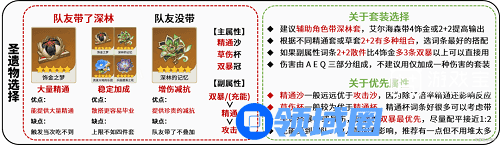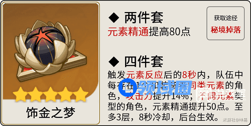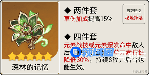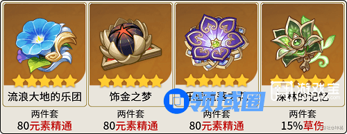 圣遗物在保证队伍里有深林套的情况下可选4饰金。