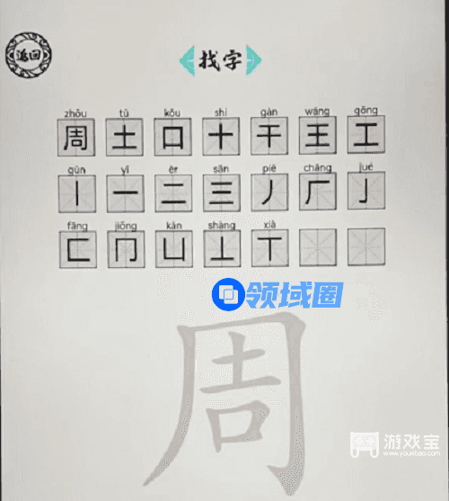 脑洞人爱汉字最新找字关卡中需要玩家从周上面找出21个汉字后才可以过关,游戏宝小编带来脑洞人爱汉字周找出21个字攻略,希望可以帮到大家。