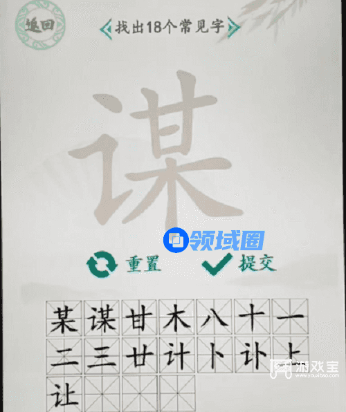 汉字找茬王最新找字关卡需要从谋上面找出18个汉字后才可以过关,游戏宝小编带来汉字找茬王谋找出18个字攻略,希望可以帮到大家。