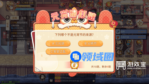 彩虹岛手游元宵节开始了猜灯谜的活动,玩家回答10道题目后即可获得奖励,游戏宝小编带来彩虹岛手游猜灯谜答案攻略,一起来看看吧。