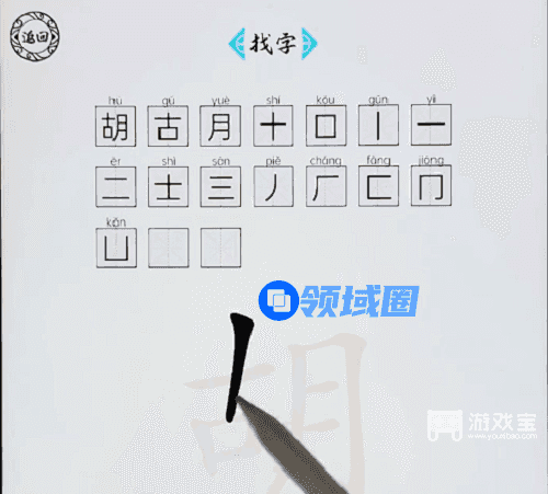 脑洞人爱汉字最新找字关卡里需要玩家从胡字上面找出17个汉字后才可以过关,游戏宝小编带来脑洞人爱汉字胡找出17个字攻略,一起来看看吧。