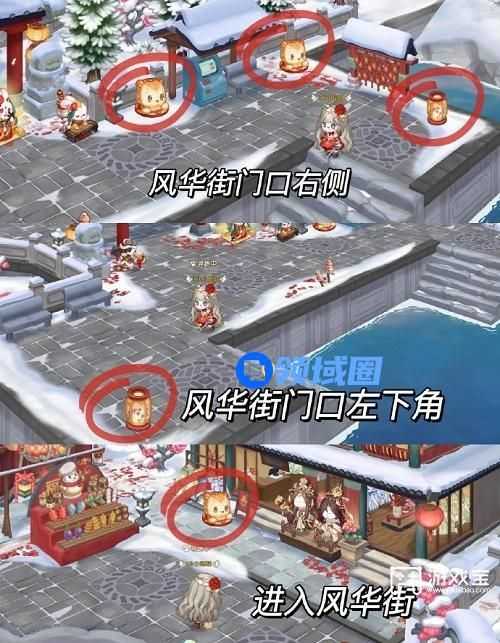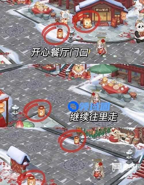2、10个灯笼具体位置也可以参考上图的红圈,每天每日随机。