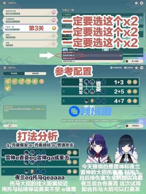 2、今天推销的是雷神和夜兰雷神的大招伤害高时间久且后续伤害为全队提供充能夜兰后台伤害高这次试用配合托马大招可以打蒸发。