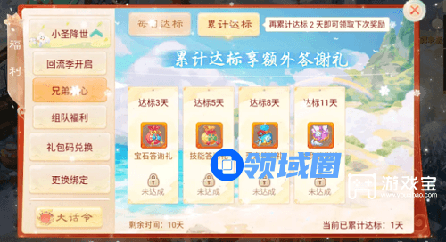 达标5天· 技能答谢礼:普通技能书残卷、普通技能书、高级技能书残卷、高级技能书、终极技能书残卷、特殊万兽园令牌;