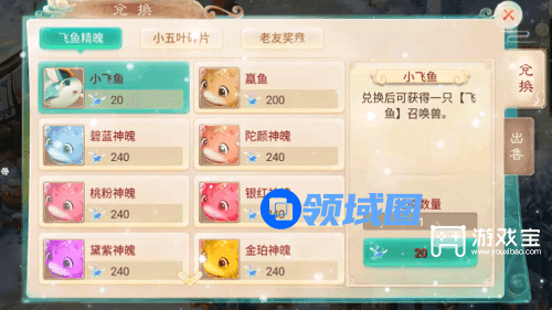 飞鱼精魄——蠃鱼、碧蓝神魄、陀颜神魄、桃粉神魄、银红神魄、黛紫神魄、金珀神魄、翡翠神魄、龙之骨、聚魄丹、高级技能、神兽丹