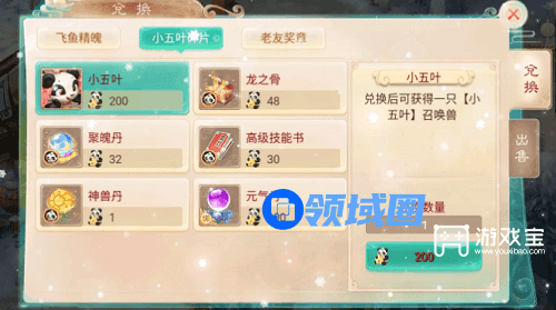 小五叶碎片:小五叶、龙之骨、聚魄丹、高级技能书、神兽丹、元气丹