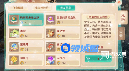 老友奖章: 毒蛇 微弱的朱雀血脉 微弱的青龙血脉 (用来供奉)