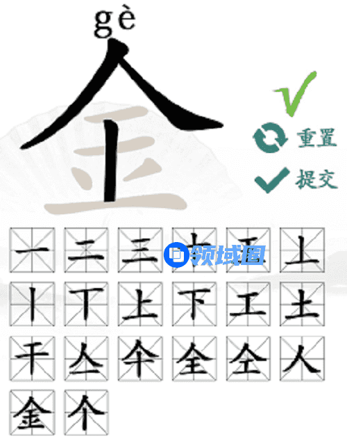 2、不知道这20个汉字是哪些的玩家,可以参考上面的答案在金字上面写出来。