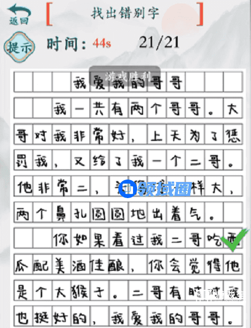 2、不知道正确答案的按照上面的文章把错别字改成过来就可以过关了。