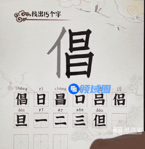 汉字派对找字关卡中,需要玩家去倡字上面找出15个汉字后才可以过关,游戏宝小编带来汉字派对倡找出15个字攻略,希望可以帮到大家。