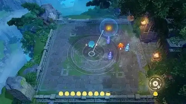 2、我方的「小小灵蕈」将自行选择最近的「棋阵机关]发起进攻,可以通过白色指示线,然后确认每个「小小灵蕈」的交战目标。