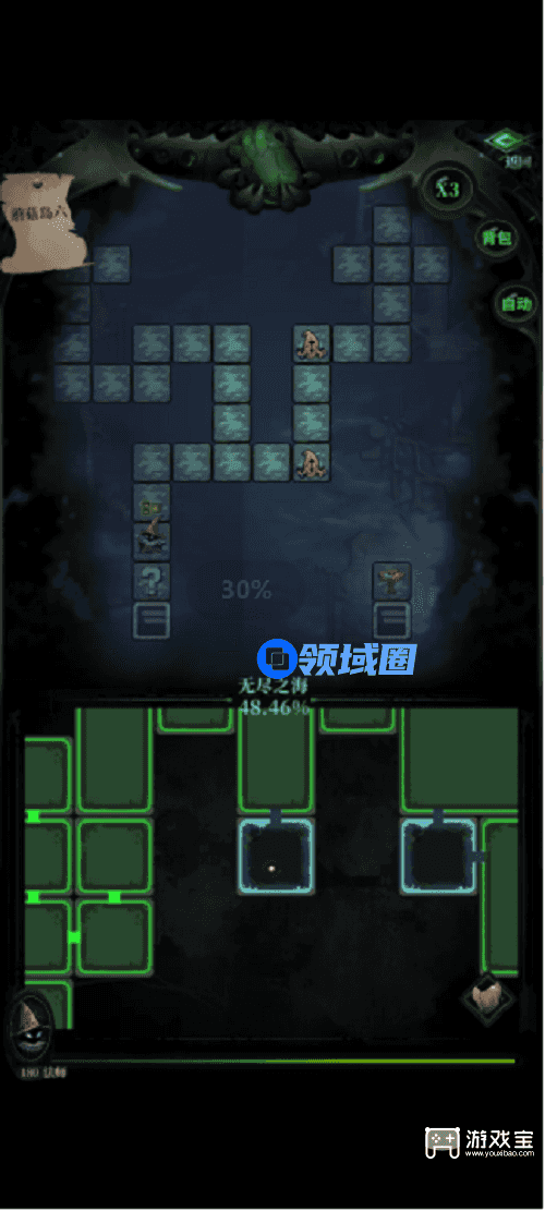 5、找到禁言监狱二,有个门需要狼形印记,直接开门,上下四个问号需要萤石,都拿到了,中间问号点开进入黑市。