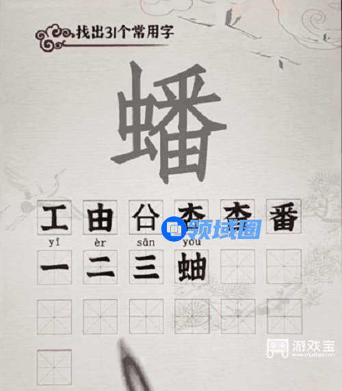 2、不知道答案的可以参考上面的汉字在蟠上面写出来,写满31个汉字后就可以过关了。