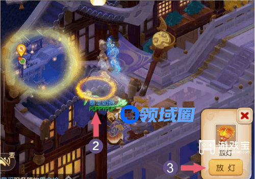 5个人按照地图左上方提示分别前往光环内,再一同点击放灯。
