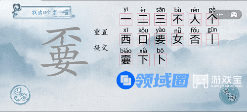 2、不知道这15个字是哪些的,可以看上面的汉字然后在嫑字上面按顺序写出就可以过关了。