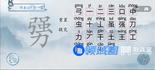 2、不知道这22个字是哪些的,可以看上面的字在勥字上按照顺序写出就可以通关了。