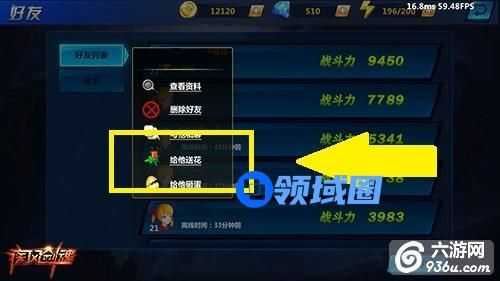 首先,打开你的好友列表,选取你想要送花的好友,点击好友头像,弹出如上图的页面,就可以看到【给他送花】的选项啦~点击【给他送花】,进入送花按钮!PS,首先你要有个好友~如果木有好友,请去公共聊天频道勾搭哦!