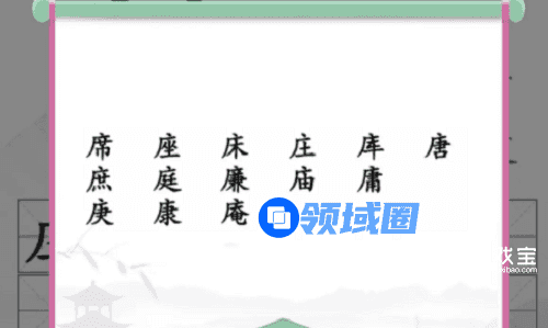 2、开局就发现文字有广十,在结合生活中所见的文字,可以找到:席、座、床、庄、库等。