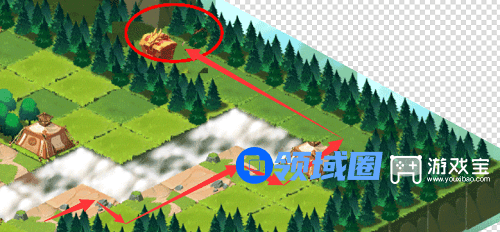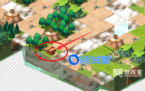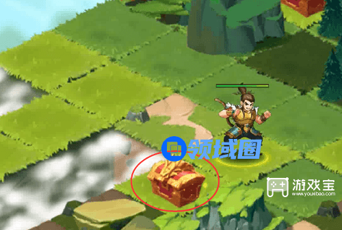 6、随后我们往地图中间走,触发中间的金色符箓(此符箓能够让左上角被树阻挡的路打开),然后往最左上角的一个角落走,那边藏着我们第3个宝箱, 拿下!