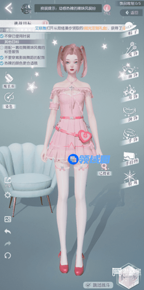 (2)三件辣妹风服装(这里用的商店三星)+四星性~感悦动时装和饰品。