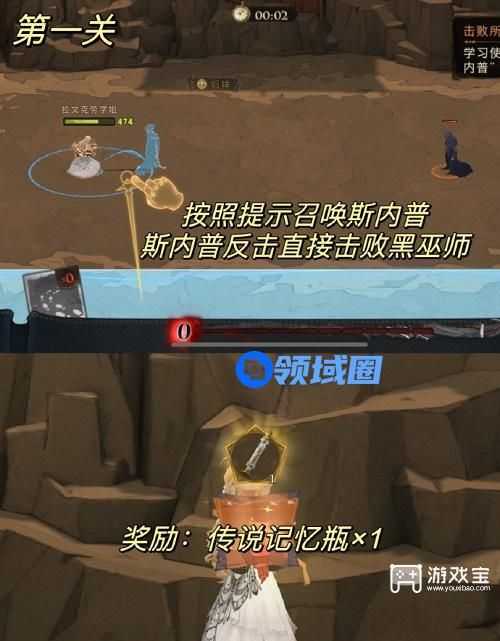 1、第一关非常简单只要按照提示召唤斯内普就可以轻松过关,奖励传说记忆瓶*1。