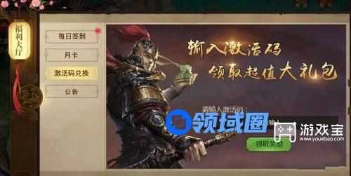 2、点击左上角福利见面,进入福利大厅,点击激活码兑换,输入对应的激活码即可领取。