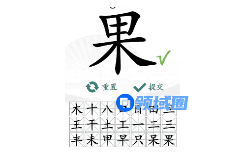 1、木、十、八、口、田、日、旦、土、王、干、工、一、二、 三、丰、未、甲、早、只、呆、果。