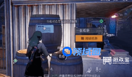 3、接下来按照提示的位置跑过去,和NPC接取任务,按照任务提示的方向来到任务位置,点击探查找到这个杆子上这个纸条。