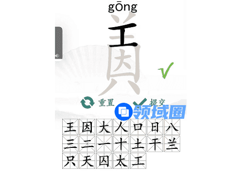 1、王、因、大、人、口、日、八、三、二、一、十、土、干、兰、只、天、囚、太、工。