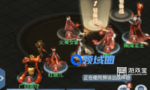4、红色阵容搭配组合:火焰女娲(守护-燃烧)+广目巡守(秒5-燃烧)+红孩儿(秒3-燃烧)+哪咤(秒3-燃烧)+南海龙王(秒3*燃烧)(红烧鱿鱼-串串香烧烤组合)