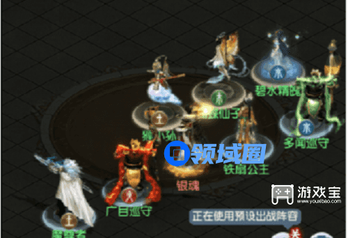 ②碧水精魄〔守护-秒3及以上皆可/优先水系)+魔尊者(秒5-降低双防)+广目巡守(秒5-燃烧)+多闻巡守(秒10-水系)+铁扇公主(秒7-群攻)