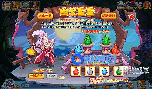 洛克王国幽火重重活动中,玩家需要集齐20个信物可以开启掌灯媚狐的进化,游戏宝小编带来洛克王国幽火重重活动攻略,一起来看看吧。
