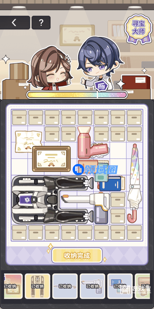 3、可多次挑战尝试收纳物品栏中的不同物品,按照收纳完成时的已收纳物品大小及数量,将获得不同的活动称号。