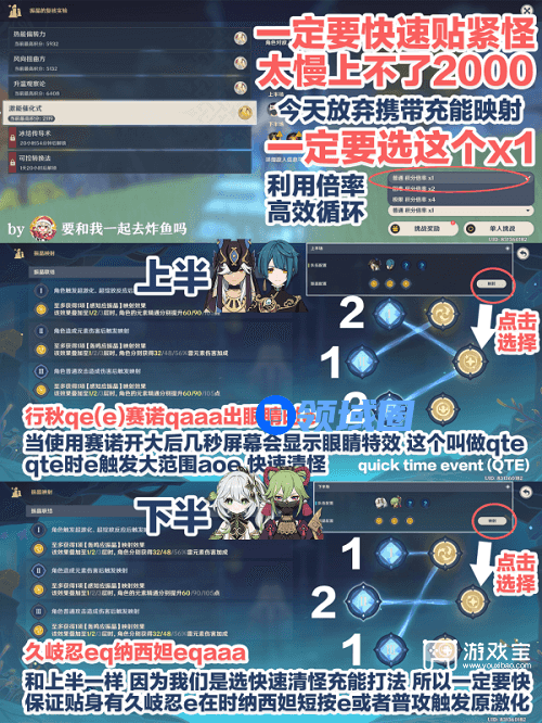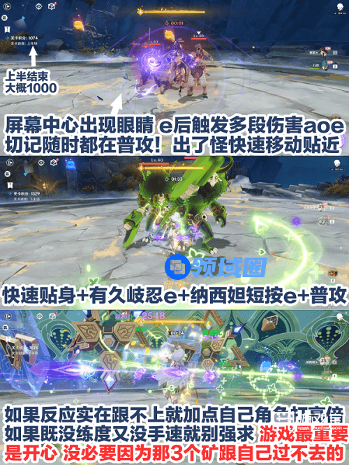 5、尤其是下半,一定要快速移动到每一个刷怪点,纳西妲短按e。