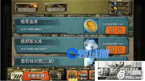 《新特种部队》游戏的战役包括标准战役和经典战役,首先我们要知道,一天的体力是有限的,而标准战役对卡牌的提升并不高。而经典战役中获得的碎片和有一定机会出的整卡才是宝贵的资源。