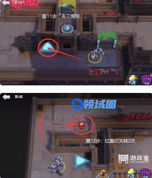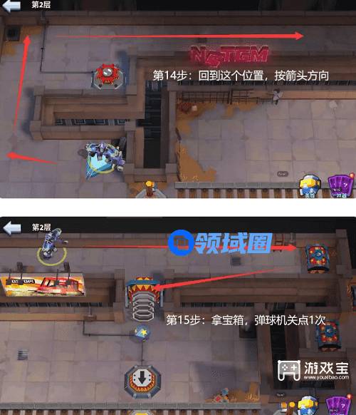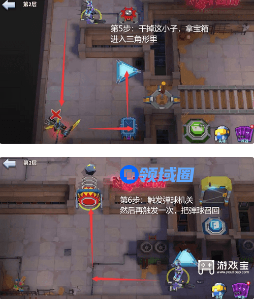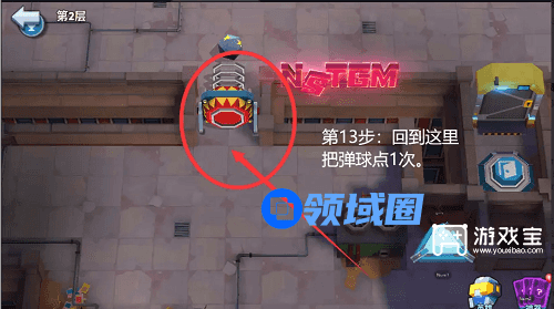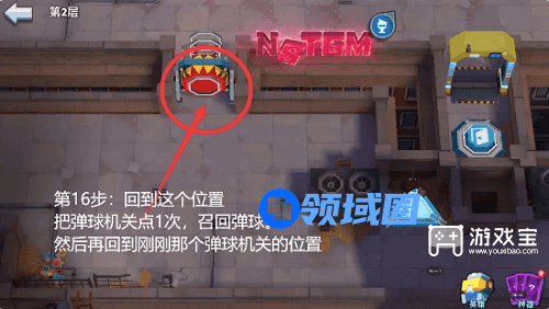 第6步:按照箭头方向去触发弹球机关,然后绿色按钮被按下后,再触发一次机关,召回小球。(如上图所示)