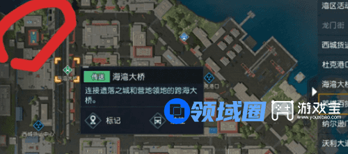 2、根据无人喝彩藏宝图提示,玩家来到海湾大桥篮球场旁边的位置就可以打开藏宝图隐藏的宝藏了。