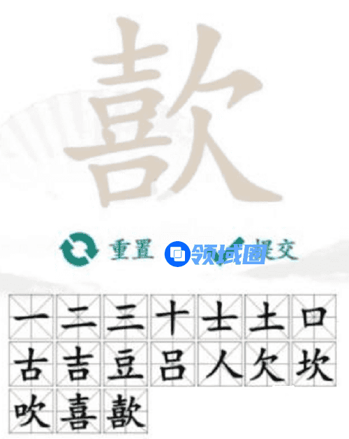 1、一、二、三、十、士、土、口、古、吉、豆、吕、人、欠、坎、吹、喜、歖。