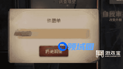 2、在镜子的左边有一到裂缝,玩家面对这个裂缝点击调查墙壁进入,打开许愿单,输入上面的兑换码以后就可以领取了。
